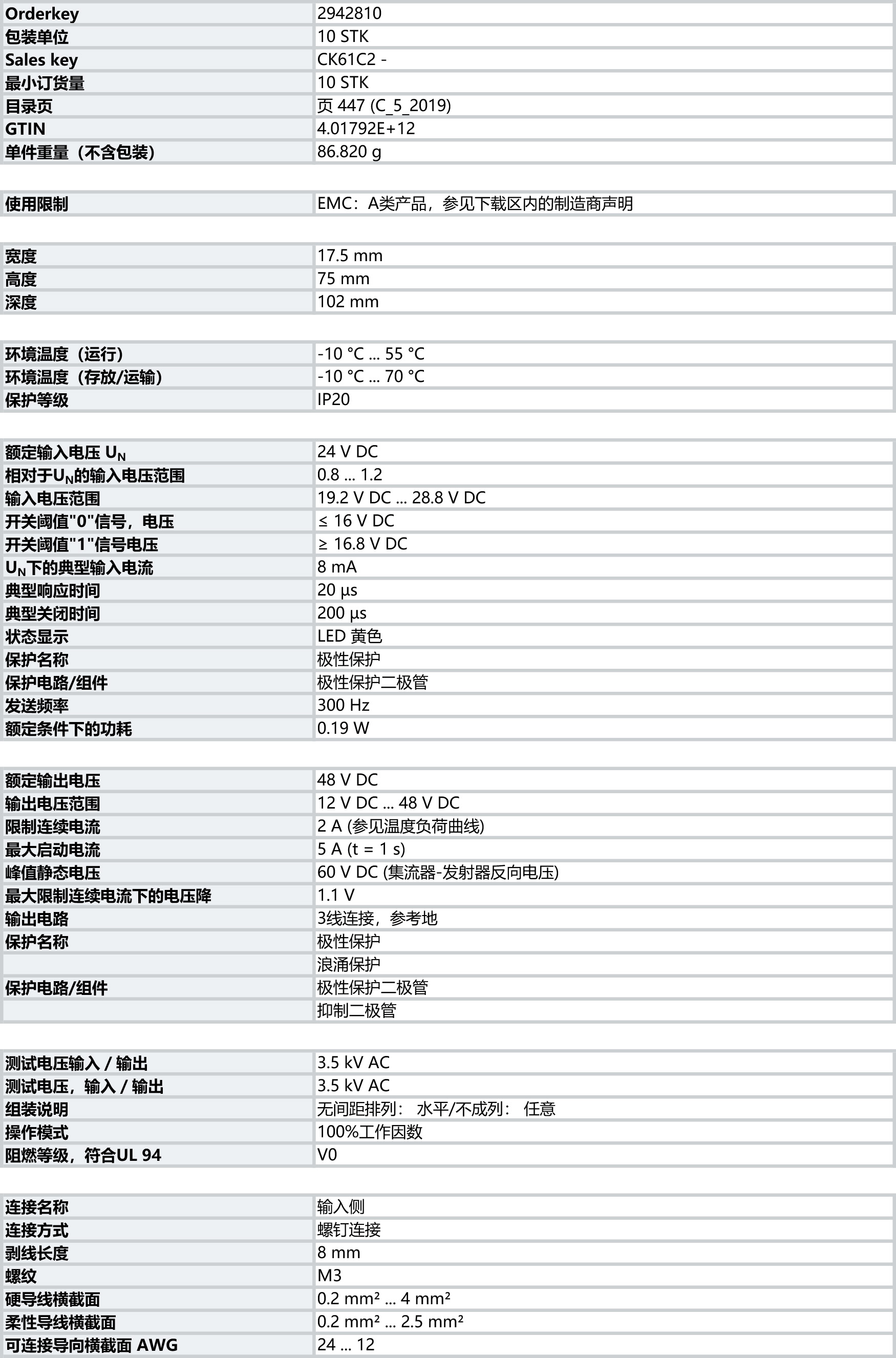 固態繼電器接口,其設計可抗控制端的干擾,輸入:24 V DC,輸出:48 V DC/2 A